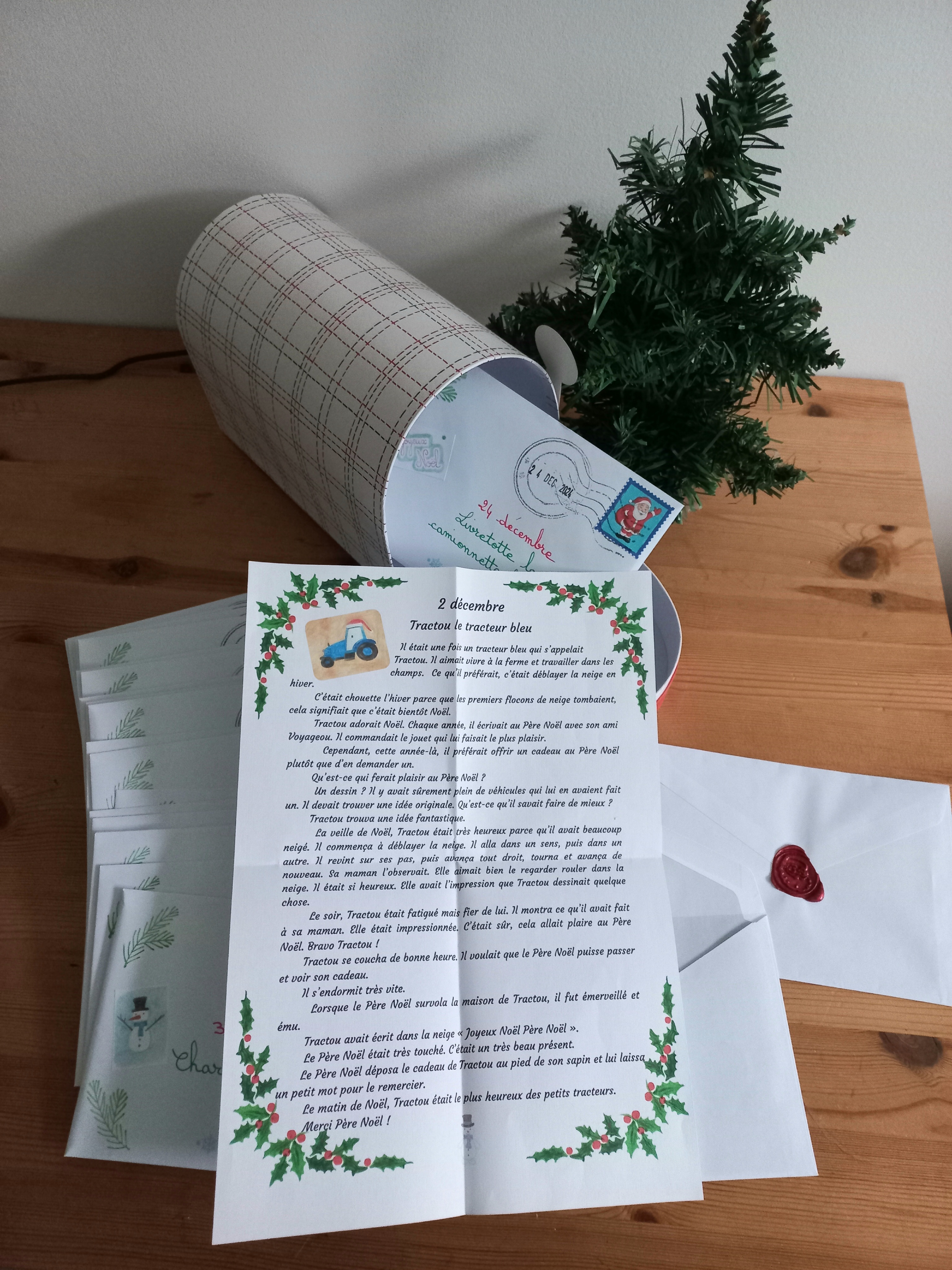 Calendrier de l'Avent Luxe : 24 Histoires "Les Véhicules fêtent Noël" (Version Papier Préparée) 🎁 Description Courte : Le rituel de l'Avent réinventé : Reçois 24 enveloppes numérotées, scellées...